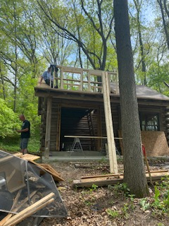 The first thing done on the cabin was to take it apart. Not completely, of course, but half the roof came off. New dormer walls went up. The floor of the loft came out and everything in the cabin removed.